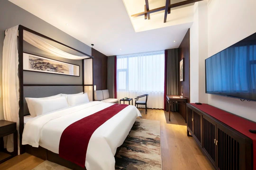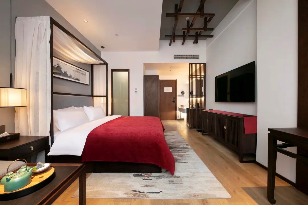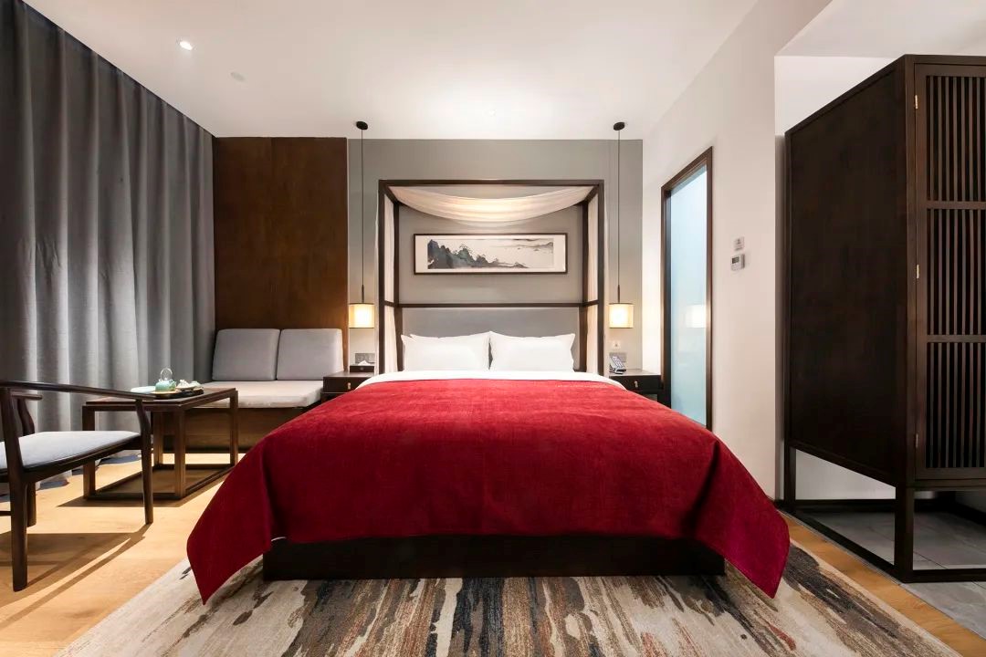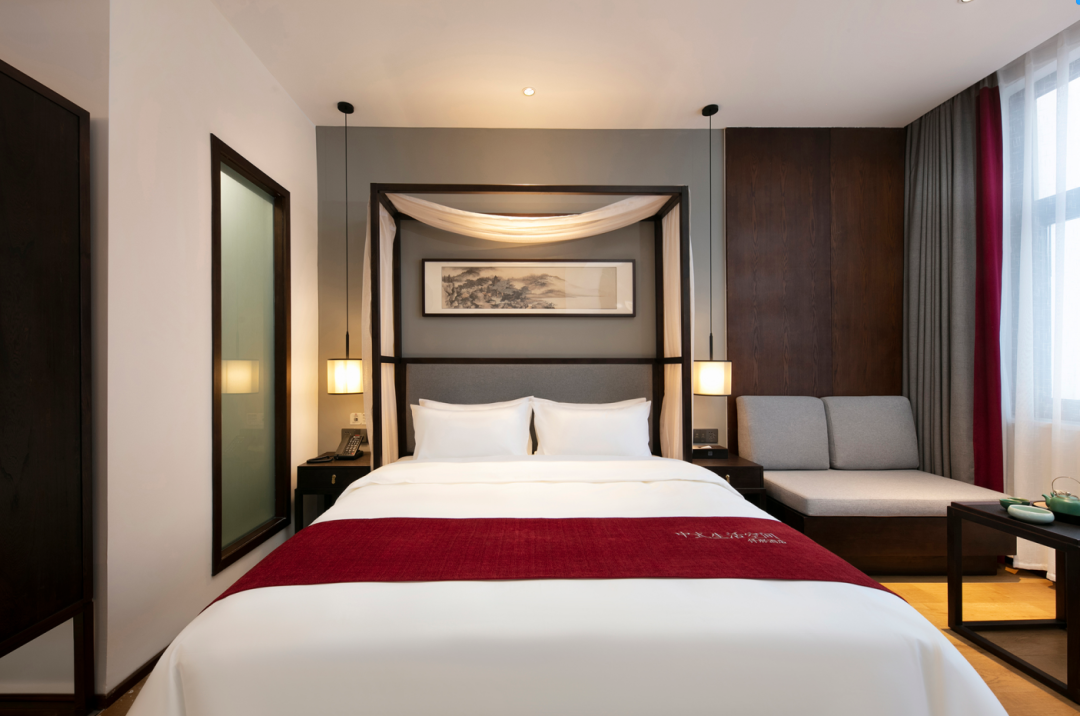 酒店客房房型众多,可供选择,每间房都有自己的特色。房间风格简约独特、低调奢华,为您在闹市中打造一处幽居,褪去内心的浮躁,寻回处久违的平静。 每间房的设计风格, 都与中国传统美好的中式元素相呼应。 纱幔、山水画、茶台、书法砚台、 实木灯饰等古色的装饰和家具, 充分展示了中国传统美学的雅致风韵。 开云手机站官网将中国传统美好的中式元素融入当代生活方式里, 通过酒店独特的艺术与人文气息, 向居客传达美学生活的旅居体验,为心灵找到久违的平静。