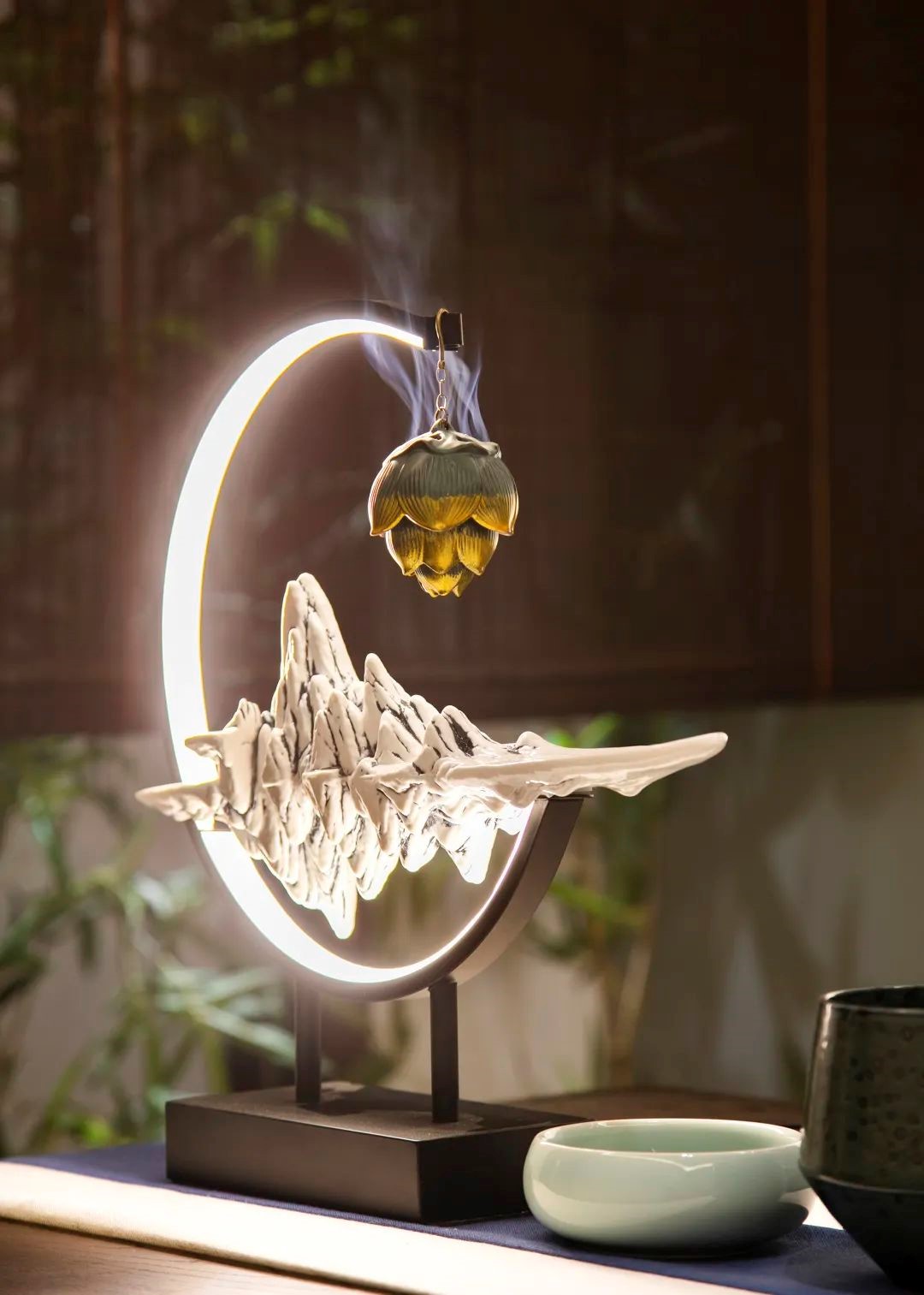 纱幔、山水画、茶台、书法砚台、