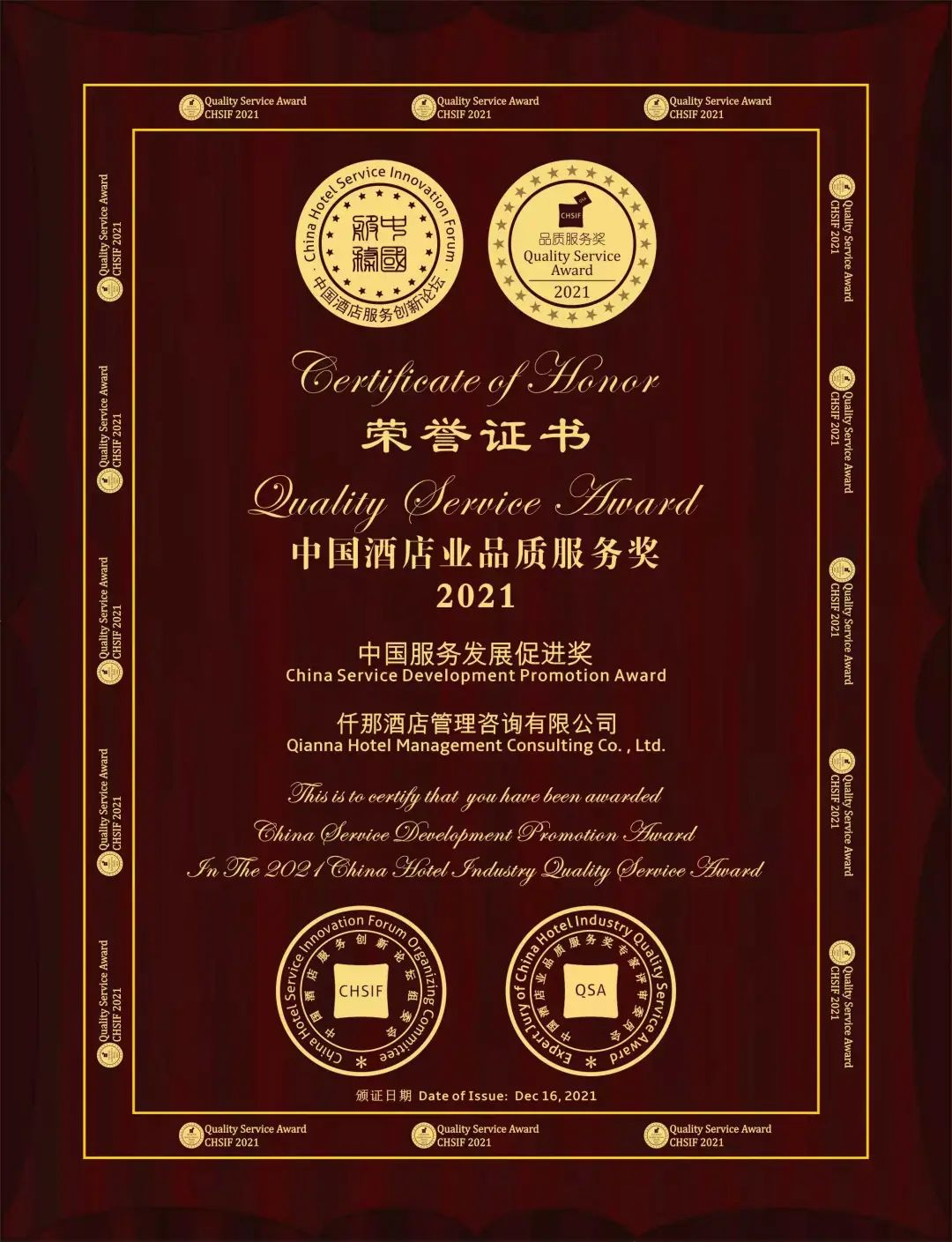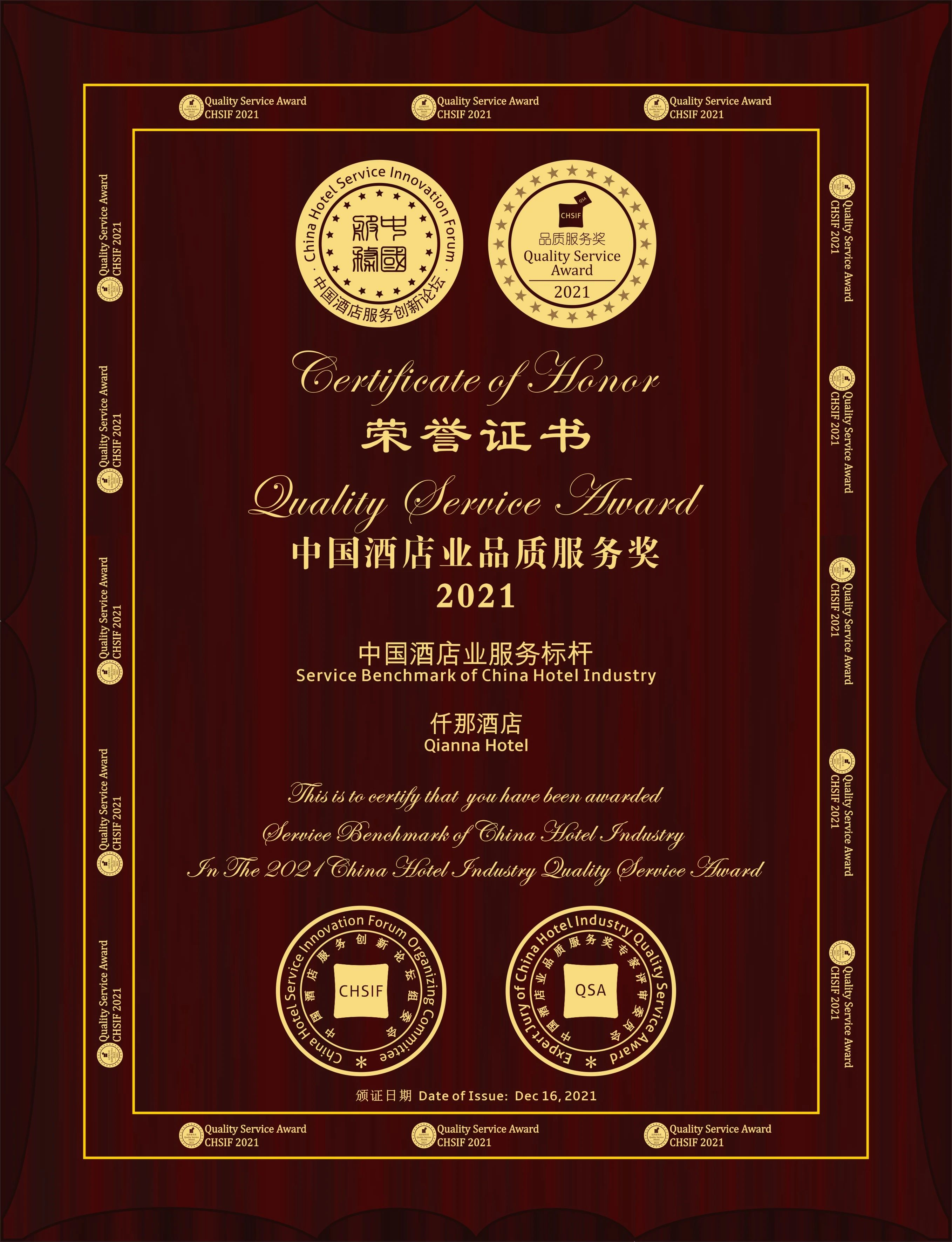 获奖简报|开云手机站官网荣膺“2021中国酒店服务业标杆奖和中国服务发展促进奖”