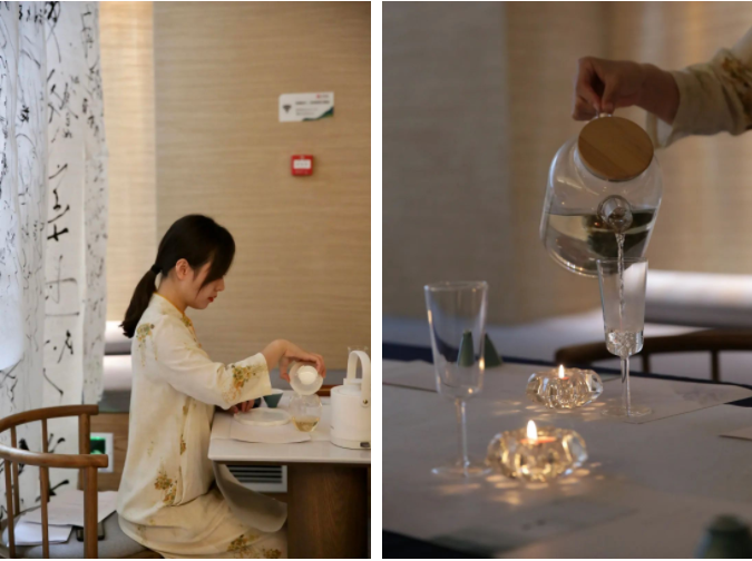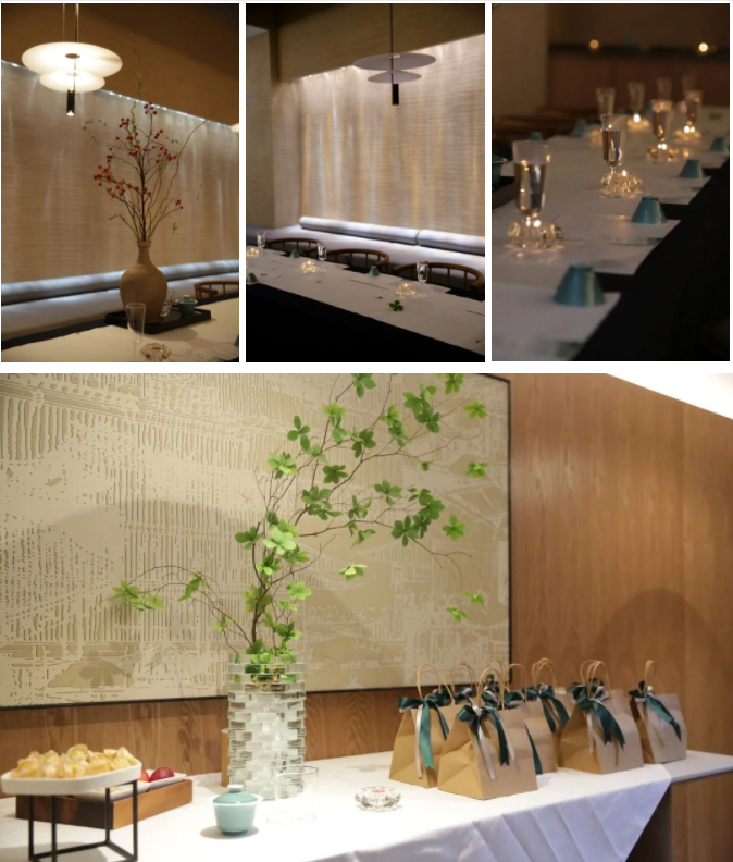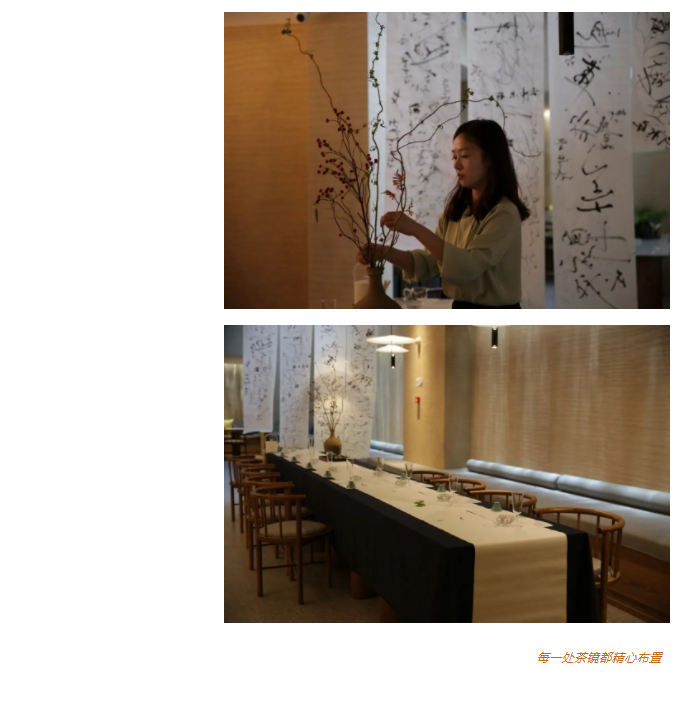 这一方茶室,淡雅幽静,又精心布置上飘逸的书法条幅、情景怡人的插花,还有晶莹剔透泡茶的茶具......清新淡雅浸润整个角落,为茶友开启一场沉浸式的茶体验。