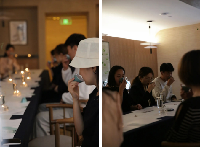 闻香品茗,氤氲茶香,润泽口齿,感受茶水回甘之味。茶友相聚,茶汤之中,余香满唇;言语之间,其乐融融。这或许就是爱茶之人的欢喜吧。