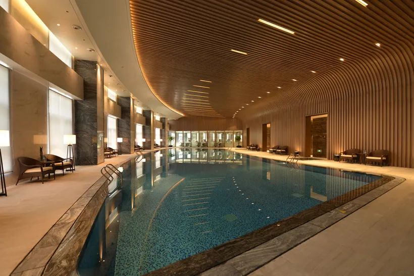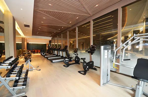 健身中心位于酒店一层,宽敞舒适的环境,国际顶级品牌健身器材以及恒温室内空调,是集运动健身、休闲娱乐于一身的vip会员制场所,底层大堂旁的室内恒温泳池为25米长,10米宽,水深1.5米,整个区域用深蓝色的瓷砖镶嵌,尽显高贵和典雅。住店客人在住店期间可以免费使用健身以及游泳设施。