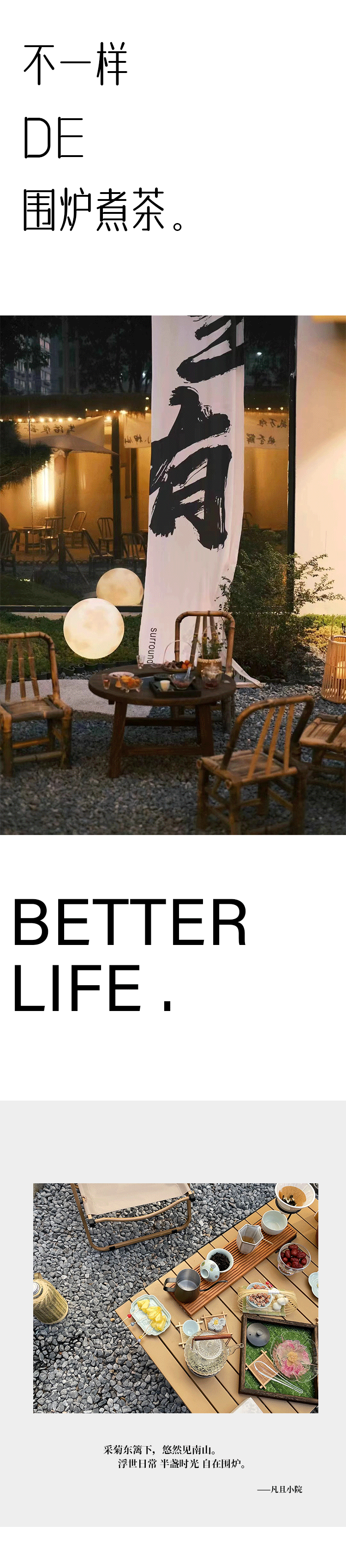 根据茶点和烤物的不同,推出适合不同客群享用的围炉煮茶套餐,提供大红袍、普洱、荒野白茶和正山小种等多种茶种选择,适当搭配陈皮、红枣等混合煮饮,让喝茶有多方式,让茶味更显醇厚。