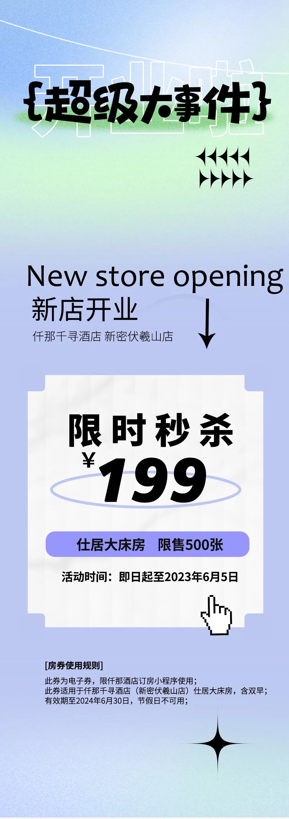 夏日新喜·开业福利 ¥199元大床房限时秒杀!