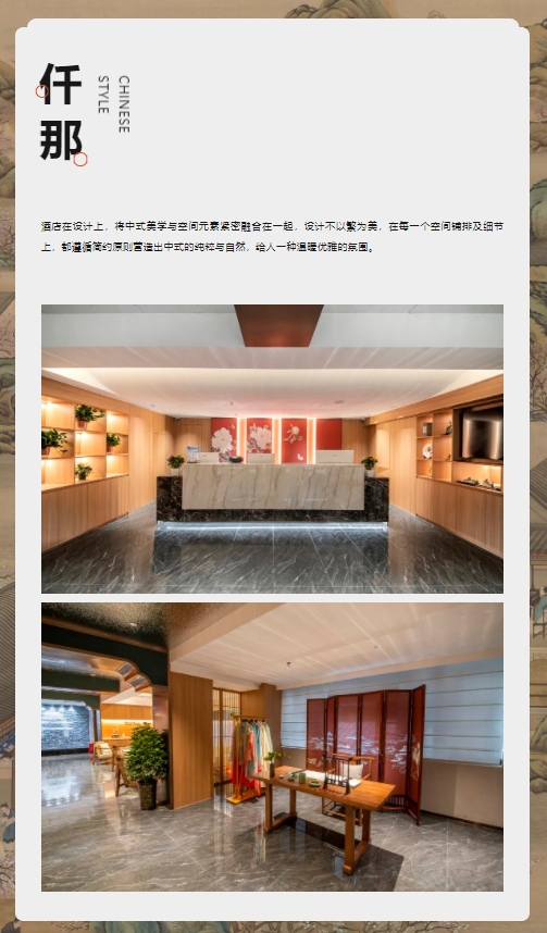酒店拥有多种房型,包括仕居房型、竹溪房型、隐士房型、家庭亲子房等。舒适大床、液晶电视、分体空调、免费无线网络设备,部分房间语音智能,酒店内设健身房、洗衣房、茶室、汉服体验区等,让宾客在这里能够享受到舒适、便捷、新奇的住宿体验。酒店提供多种增值服务,24小时前台、免费茶水零食、旅游咨询、行李寄存、欢迎果盘、伴手礼等,给顾客带来宾至如归的入住体验。